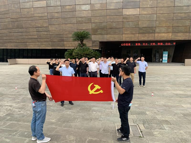 在跨湖橋遺址博物館前,公司黨支部舉行了簡樸而莊重的宣誓儀式。黨支部書記朱華生同志帶領(lǐng)全體黨員在黨旗前重溫入黨誓詞,并強(qiáng)調(diào)今天我們在此重溫入黨誓詞,宣讀入黨誓言,就是要讓大家不忘自己的承諾,在日常工作、生活中都要對照檢查自己的一言一行,唯有按照入黨誓詞的要求,用黨章這面鏡子檢查對照,經(jīng)常進(jìn)行自我教育、自我提高,才能不斷改進(jìn)世界觀、人生觀、價值觀,樹立正確的事業(yè)觀、工作觀、政績觀,才能始終保持共產(chǎn)黨員的純潔性和先進(jìn)性。