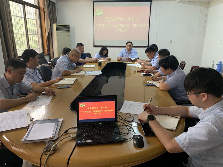 會議分五項議程:一是由支部書記吳俊杰帶領全體人員學習習近平總書記在黨史學習教育動員大會上的重要講話精神;二是學習習近平總書記在慶祝中國共產黨成立100周年大會上的重要講話;三是黨員孫大勇講述黨史《中共黨史上“南陳北李,相約建黨”的佳話》;四是老黨員孫大勇分享入黨多年的心得體會;五是支部黨員互相檢查四本書留痕情況。