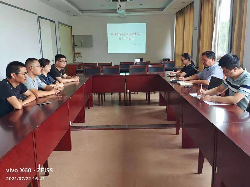 2021年7月22日下午,測(cè)繪公司負(fù)責(zé)人沈亦祥組織公司員工在大會(huì)議室緊急召開(kāi)防臺(tái)工作會(huì)。