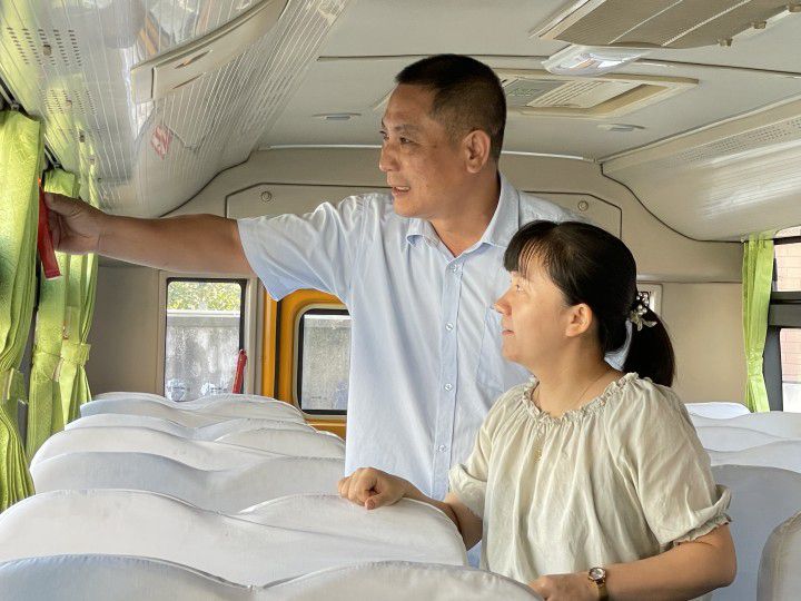 期間,分公司校車進行檢查的重點包括校車各類證件、車輛外觀標識、安全帶、安全錘、應急門、天窗、滅火器以及疫情防控用品的配備情況,檢查車輛機務狀況以及疫情防控工作,對檢查中發現的問題立即現場整改到位。同時,對隨車照管員和駕駛員進行專項安全教育培訓,重點包括疫情期間防疫措施及應對、滅火器、安全錘、應急門窗等隨車設施設備的使用,事故案例分析等,確保校車的行車安全、消防安全和防疫安全。