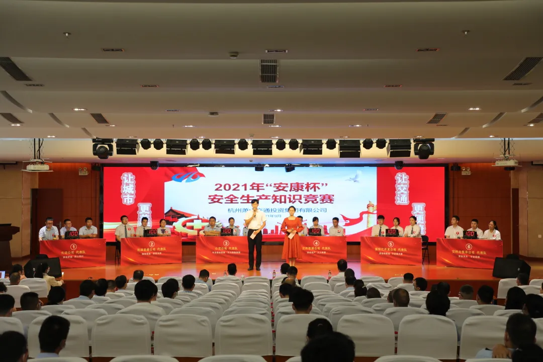為宣傳貫徹新《安全生產法》,普及安全生產法律法規,培育安全生產法治文化,營造學法用法守法濃厚氛圍,增強全員安全責任意識,打造“平安交投”品牌形象,9月28日下午,集團2021年 “安康杯”安全生產知識競賽決賽舉行。集團黨委副書記、總經理徐寧軍,黨委委員、紀委書記郭維濤,副總經理鐘波出席會議并擔任評委。集團各部室負責人,所屬各單位黨組織、行政負責人,安全生產分管負責人及相關管理人員、一線職工代表150余人觀摩競賽。