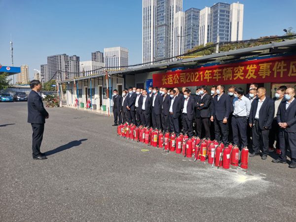 為落實集團下發的<<關于進一步強化消防安全工作立即組織開展消防安全大檢查的通知>>的文件精神,結合11月的全省消防宣傳月及全省“千萬工程”現場會的活動,為確保重大活動消防安保工作,切實做好秋冬季消防工作,最大限度地預防和減少各類突發事件造成的損害,提高員工在發生突發事件時撲救初始火災和組織人員疏散逃生的應急處置能力,11月12日上午,長運公司客運分公司在杜湖停車場組織開展了2021年客運分公司消防宣傳月消防演練活動,公司安保部、分公司經理室、各部門管理人員和部分駕駛員參加本次消防演練,公司黨總支委員、副總經理王建慶蒞臨指導。