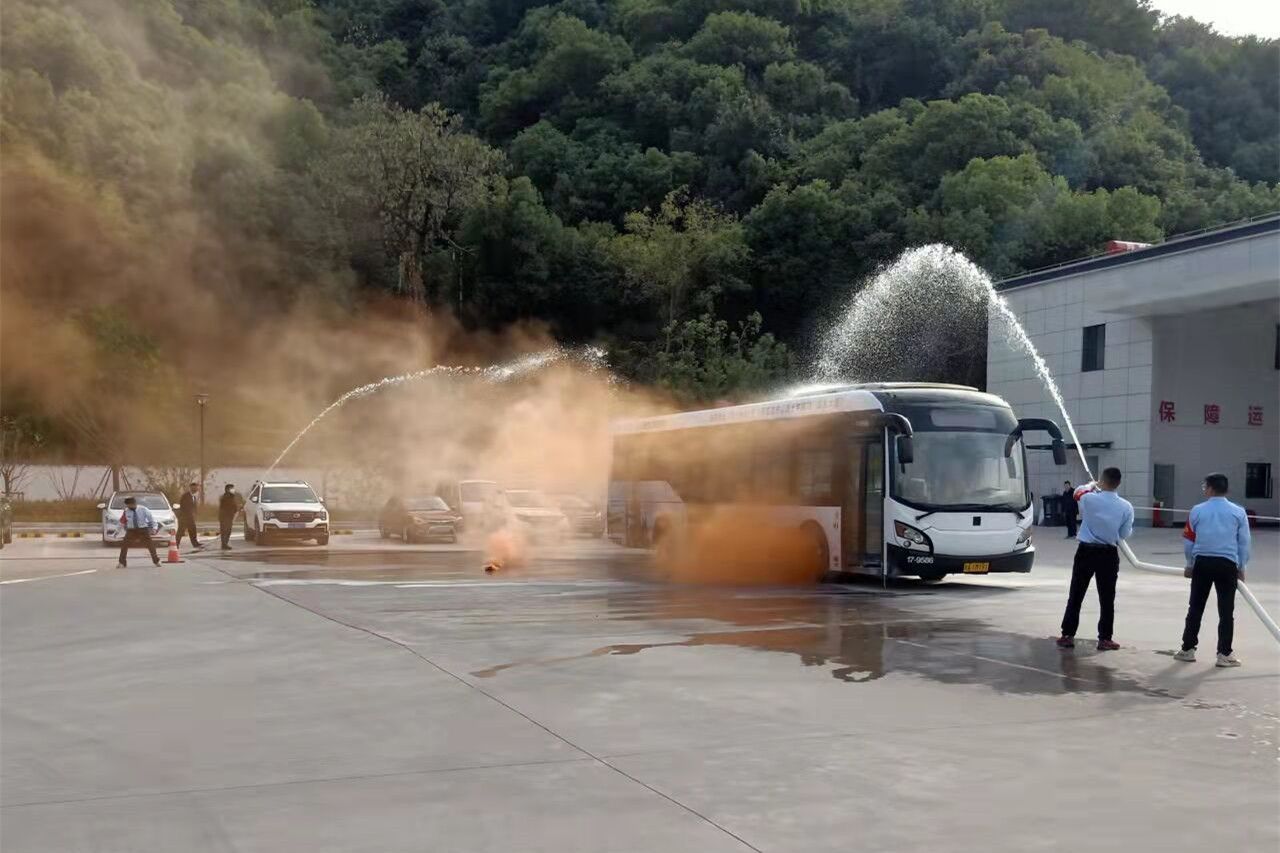 此次活動模擬了“公交中心站公交車輛起火”的真實場景:北干停車場內,保安在巡邏過程中發現一輛公交車發生自燃,著火點位于發動機處。發現火情后,該保安立即展開自救并示意同事按響停車場警報鈴,同時撥打火警電話“119”進行報警;在聽到場站警鈴后,北干停車場義務消防分隊迅速開展第二波搶救并逐級上報;在總指揮指示下立即啟動消防突發事件聯動應急預案,同時迅速召集各搶險施救小組及義務消防隊員趕至現場進行滅火處置;火勢得到有效控制后熄滅,隨后義務消防隊員清理現場,恢復秩序。整個演練中各環節配合連貫、協調到位,實現了快速發現、及時救援、指揮高效的預期效果。