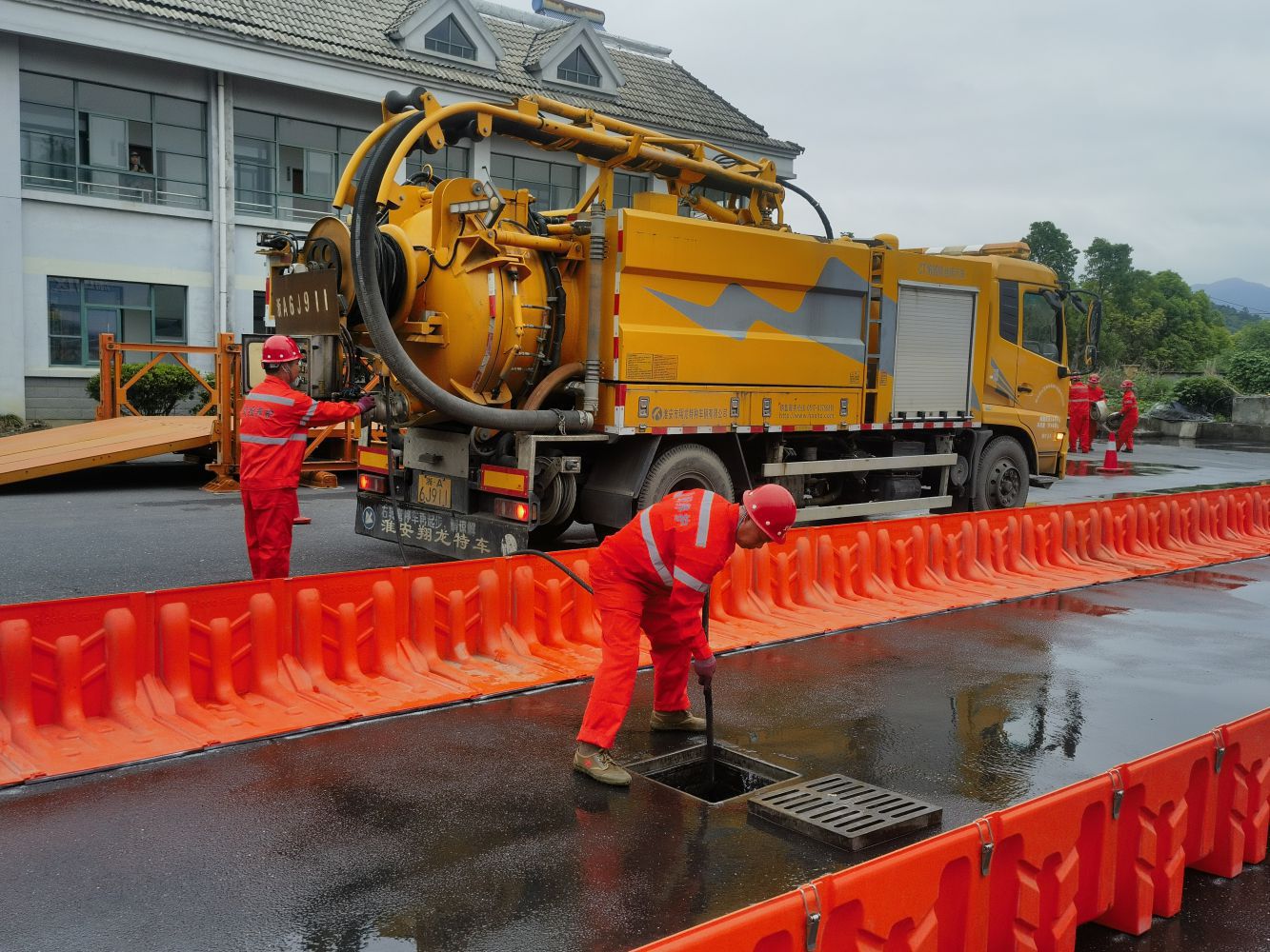 緊接著,防汛防洪應(yīng)急演練拉開帷幕。演練模擬因連續(xù)暴雨,水流沖擊導(dǎo)致235國道735K+300出現(xiàn)大面積積水的災(zāi)害險情。演練內(nèi)容包括預(yù)案啟動、指揮調(diào)度、道路清障、現(xiàn)場維護(hù)和排水疏通搶險。示警錐放置、防洪板圍擋,各參演人員各司其職、密切配合;應(yīng)急排水車、吸污疏通車等各類搶險車輛迅速集結(jié)、有條不紊。結(jié)束后撤除路面維護(hù),恢復(fù)通行,最大限度地減輕水災(zāi)造成的損失。