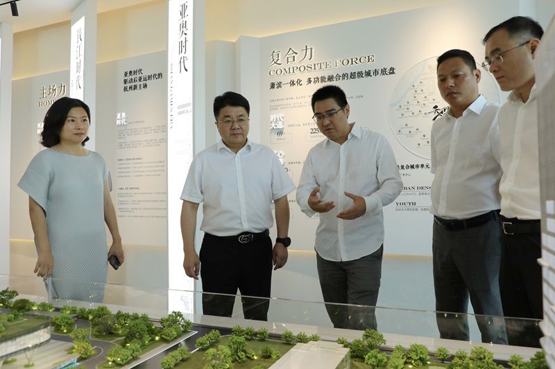 7月17日,區委副書記、區長姜永柱調研集團無限公園。副區長朱國軍參加,區府辦、區發改局、區經信局、區商務局、區投促局、區科技局、北干街道主要負責人,集團黨委書記、董事長夏國燕,副總經理鐘波等陪同調研。