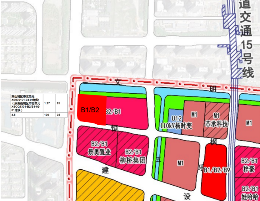 該地塊位于北干街道,東至規(guī)劃商業(yè)商務用地,南至恒楓路,西至博奧路,北至解放河綠化帶,規(guī)劃性質為商業(yè)商務用地,出讓面積12711平方米(19.07畝),容積率不大于4.5不低于1.5。