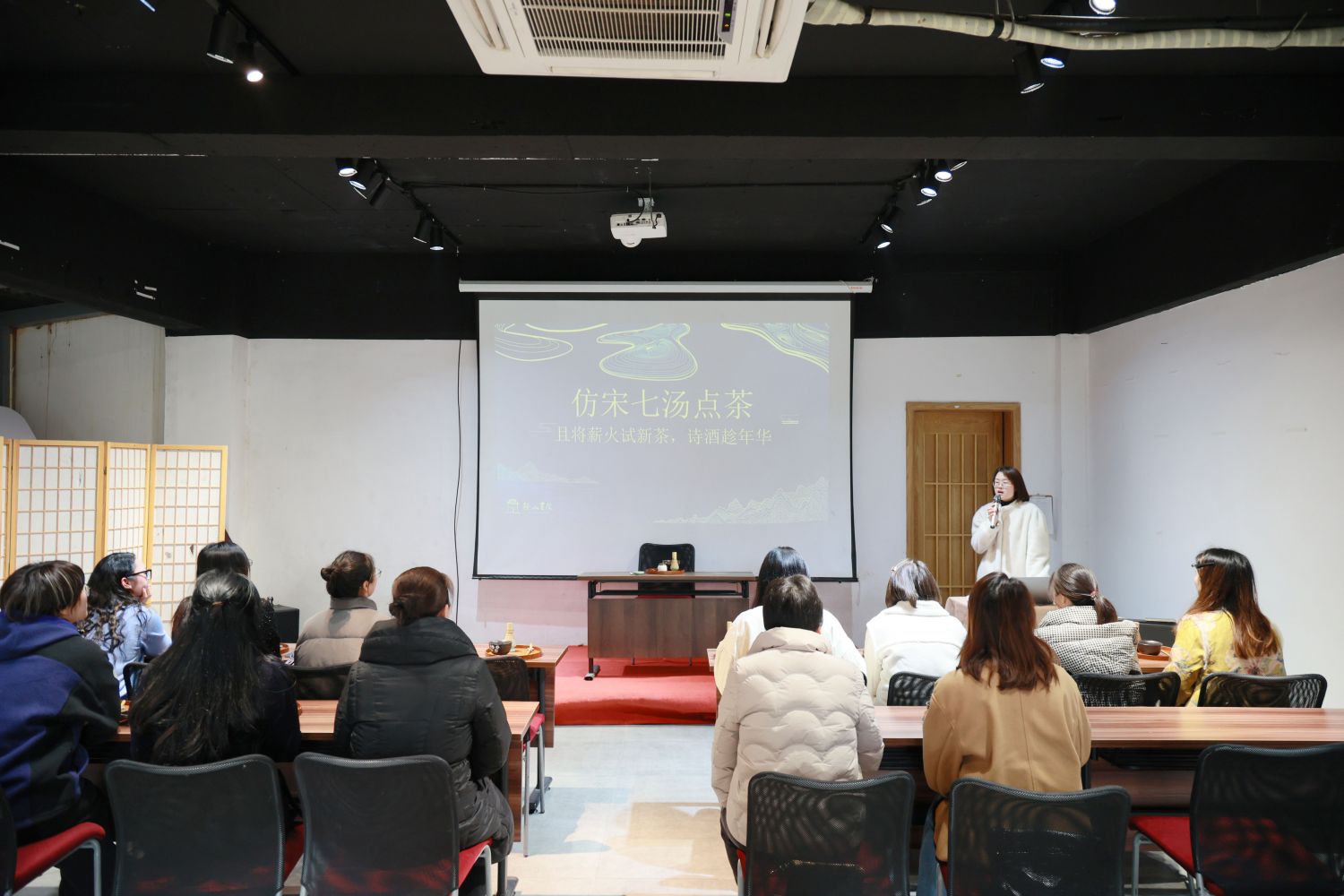 仿宋點茶·靜享風(fēng)雅時光 從紅色歷史中走出,大家轉(zhuǎn)場體驗了徑山茶宴·仿宋點茶。手持茶筅,輕擊茶湯,水波翻涌間“戰(zhàn)雪濤”的白色湯花緩緩浮現(xiàn),在茶藝師的指導(dǎo)下,大家嘗試注水、擊拂,茶香裊裊中,浮躁的心也沉靜下來。一杯茶,一份禪意,大家笑稱:“這簡直是古代版‘沉浸式解壓’!”