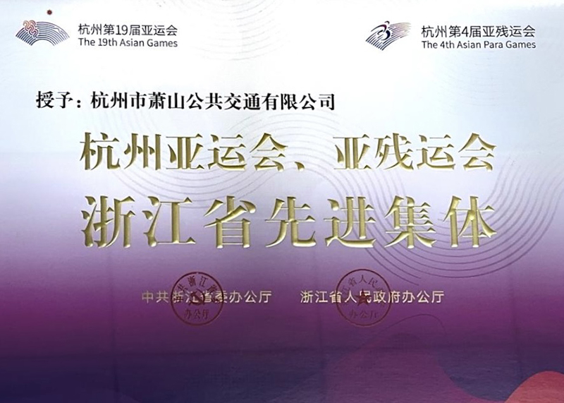 2024年2月 集團下屬公交公司獲評“杭州亞運會、亞殘運會浙江省先進集體”稱號