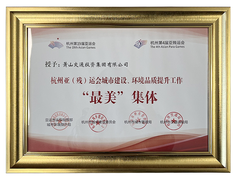 2024年3月 交投集團榮獲由亞運市運保指揮部城市環境提升組等4部門共同頒發的杭州亞(殘) 運會城市建設、環境品質提升工作“最美”集體榮譽稱號