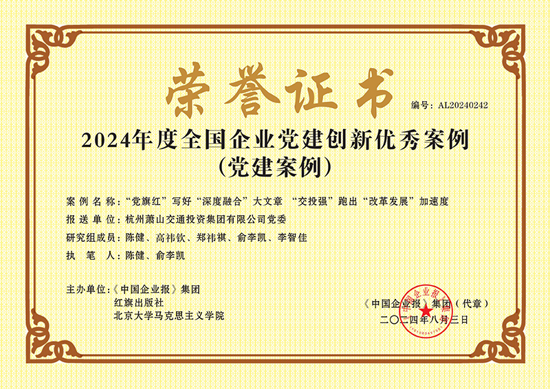 2024年8月 集團黨委獲評2024年度全國黨建創新優秀案例(黨建案例)